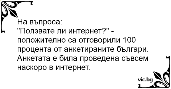 "Ползвате ли интернет?" - положително са отговорили 100 процента от анкетираните българи.