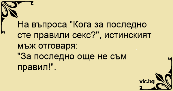 На въпроса "Кога за последно сте правили cekc?", истинският мъж отговаря: