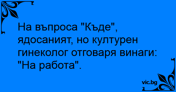 На въпроса "Къде", ядосаният, но културен гинеколог отговаря винаги:
