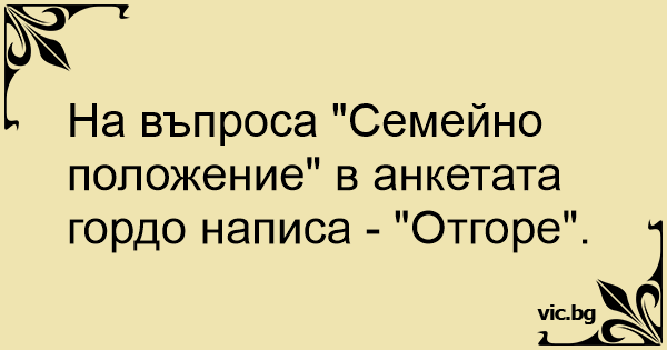 На въпроса "Семейно положение" в анкетата гордо написа - "Отгоре".