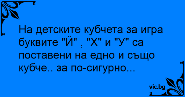 На детските кубчета за игра буквите "Й" , "Х" и "У" са поставени на едно и също кубче.. за по-сигурно...