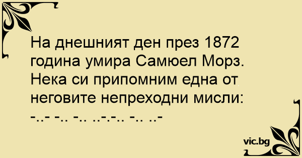 На днешният ден през 1872 година умира Самюел Морз.