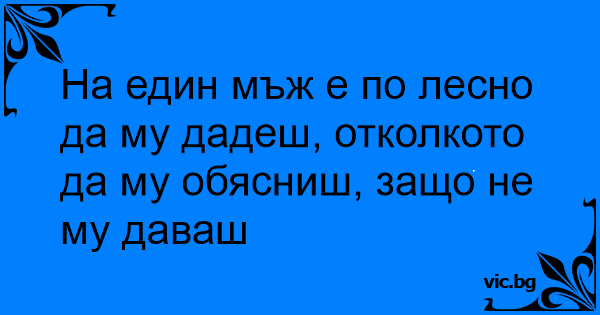 На един мъж е по лесно да му дадеш, отколкото да му обясниш, защо не му даваш