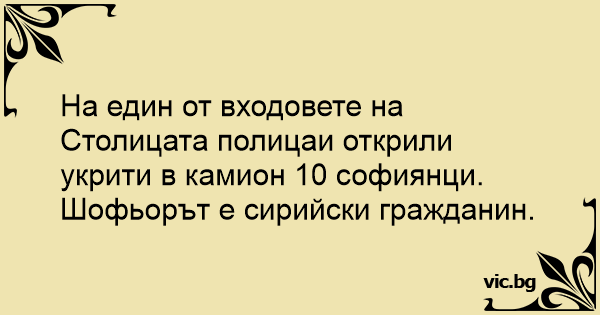 На един от входовете на Столицата полицаи открили укрити в камион 10 софиянци. Шофьорът е сирийски гражданин.