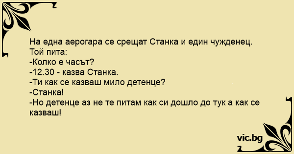 • Вицове от Facebook от нашата страница https://www.facebook.com/www.vic.bg