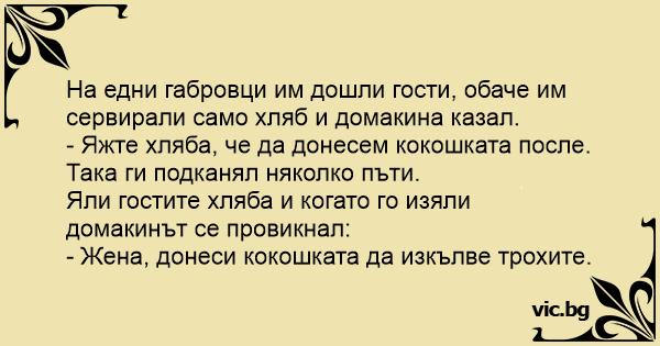 На едни габровци им дошли гости, обаче им сервирали само хляб и домакина казал.
