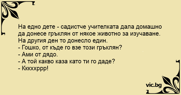 На едно дете - садистче учителката дала домашно да донесе гръклян от някое животно за изучаване.