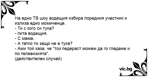 - Ами той каза, че "тоз пeдepact можем да го гледаме и по телевизията".