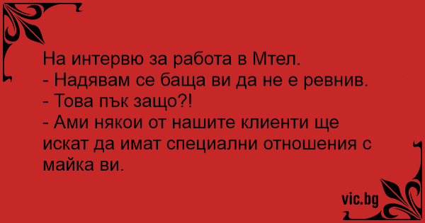 На интервю за работа в Мтел.