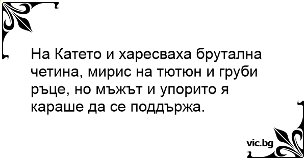 На Катето и харесваха брутална четина, мирис на тютюн и груби ръце, но мъжът и упорито я караше да се поддържа.