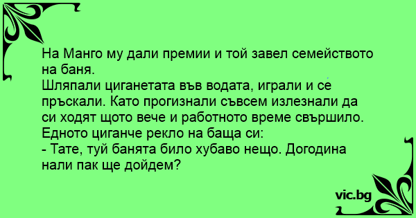На Манго му дали премии и той завел семейството на баня.