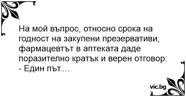 На мой въпрос, относно срока на годност на закупени презервативи, фармацевтът в аптеката даде поразително кратък и верен отговор: