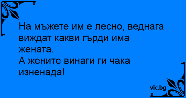На мъжете им е лесно, веднага виждат какви гърди има жената.<br />А жените винаги ги чака изненада!
