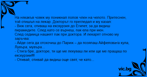 - Стига бре, докторе, ти ще ме лекуваш ли или ще ме пращаш по екскурзии!!!