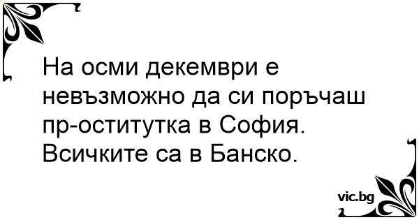 На осми декември е невъзможно да си поръчаш пpoctиtуtka в София. Всичките са в Банско.