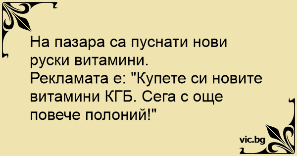Рекламата е: "Купете си новите витамини КГБ. Сега с още повече полоний!"