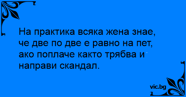 На практика всяка жена знае, че две по две е равно на пет, ако поплаче както трябва и направи скандал.