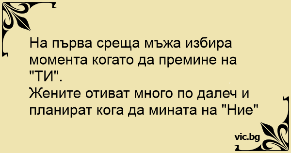 На първа среща мъжа избира момента когато да премине на "ТИ".