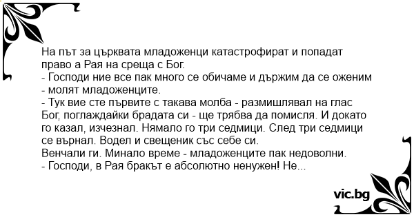 - Господи, в Рая бракът е абсолютно ненужен! Не може ли да се разведем?