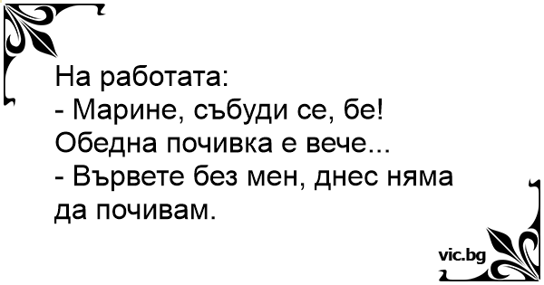 - Марине, събуди се, бе! Обедна почивка е вече...