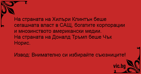 Извод: Внимателно си избирайте съюзниците!