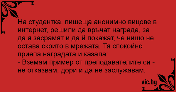 • Вицове от Facebook от нашата страница https://www.facebook.com/www.vic.bg