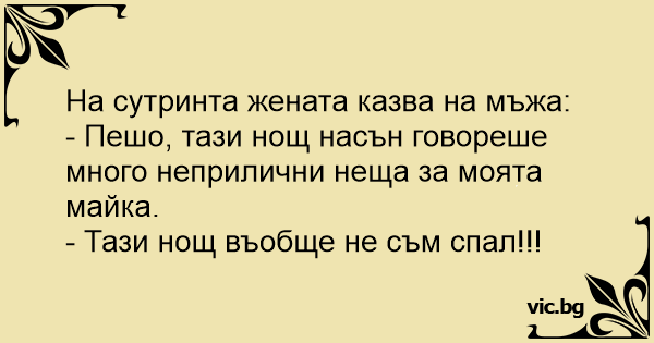 - Пешо, тази нощ насън говореше много неприлични неща за моята майка.