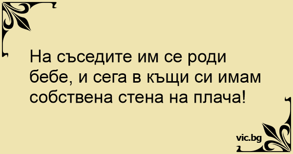 На съседите им се роди бебе, и сега в къщи си имам собствена стена на плача!