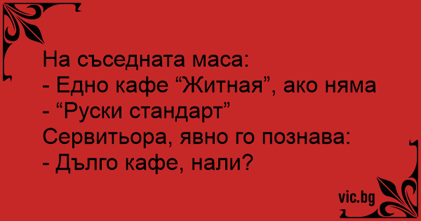 - Едно кафе “Житная”, ако няма - “Руски стандарт”