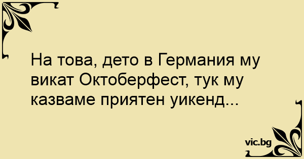 На това, дето в Германия му викат Октоберфест, тук му казваме приятен уикенд...