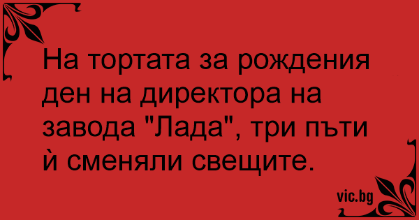 На тортата за рождения ден на директора на завода "Лада", три пъти ѝ сменяли свещите.