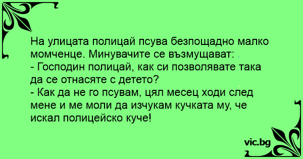 - Как да не го псувам, цял месец ходи след мене и ме моли да изчуkam кучката му, че искал полицейско куче!