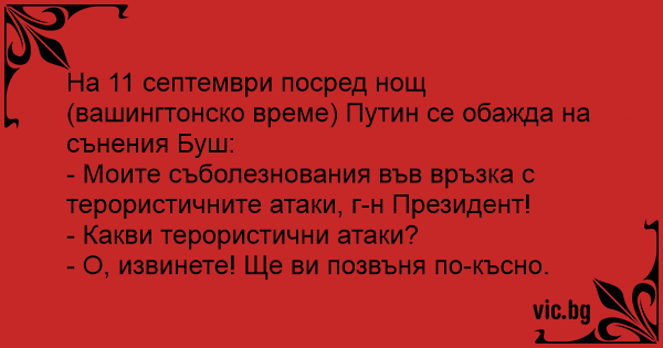 На 11 септември посред нощ (вашингтонско време) Путин се обажда на сънения Буш: