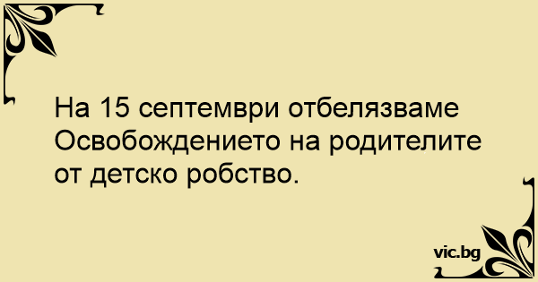 На 15 септември отбелязваме Освобождението на родителите от детско робство.