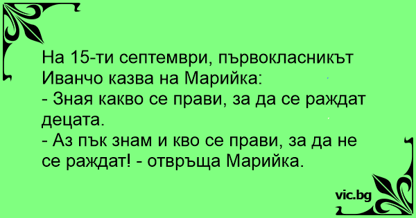 На 15-ти септември, първокласникът Иванчо казва на Марийка:
