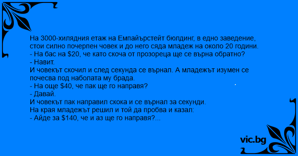 - На бас на $20, че като скоча от прозореца ще се върна обратно?