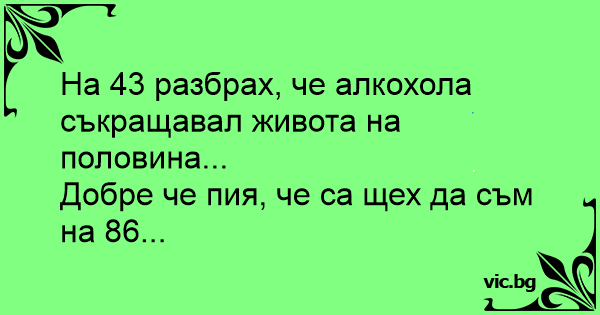 На 43 разбрах, че алкохола съкращавал живота на половина...