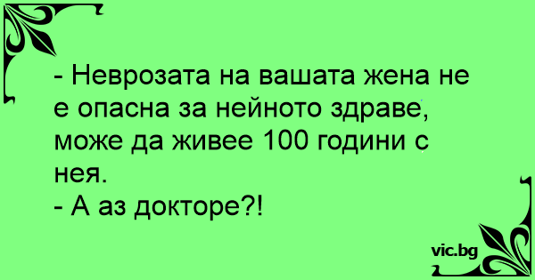 - Неврозата каj вашата жена не е опасна. Со неа може да живее и сто години.