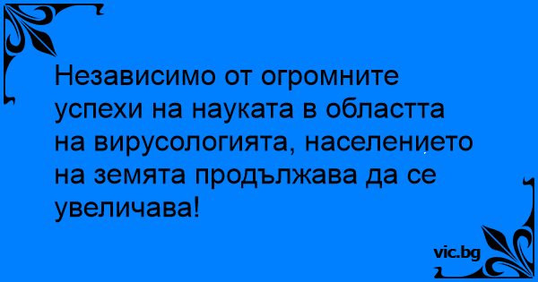 Независимо от огромните успехи на науката в областта на вирусологията, населението на земята продължава да се увеличава!