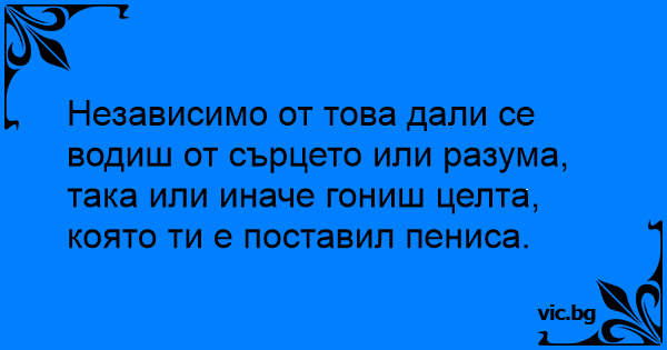 Независимо от това дали се водиш от сърцето или разума, така или иначе гониш целта, която ти е поставил пeниca.