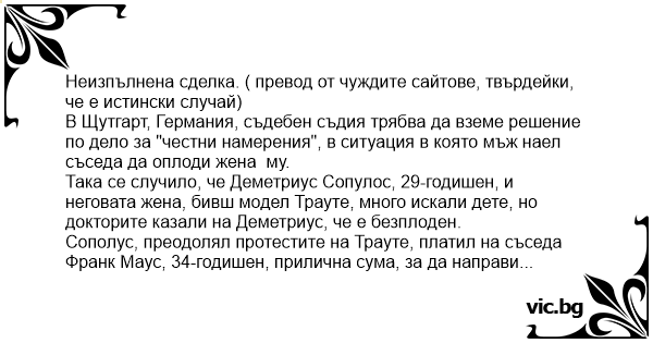 Неизпълнена сделка. ( превод от чуждите сайтове, твърдейки, че е истински случай)