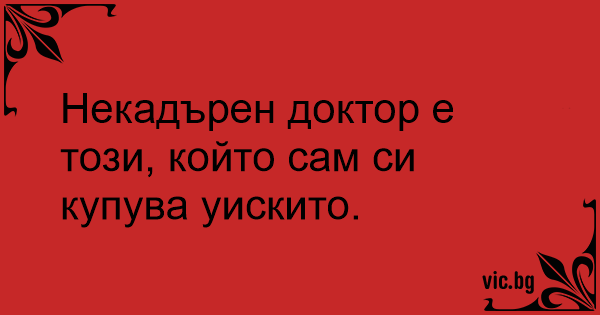 Некадърен доктор е този, който сам си купува уискито.