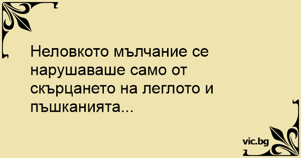 Неловкото мълчание се нарушаваше само от скърцането на леглото и пъшканията...