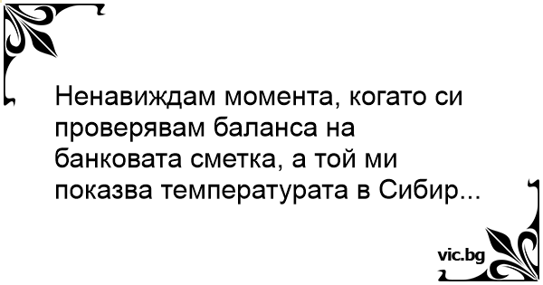 Ненавиждам момента, когато си проверявам баланса на банковата сметка, а той ми показва температурата в Сибир...