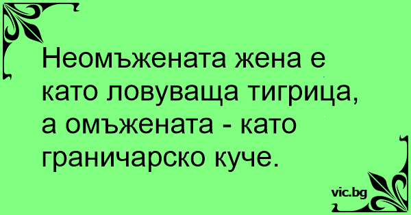 Неомъжената жена е като ловуваща тигрица, а омъжената - като граничарско куче.