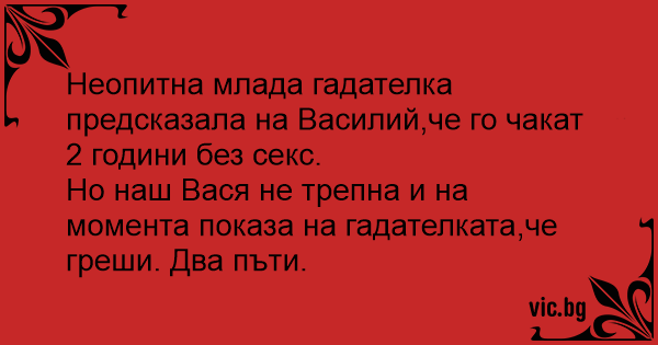 Неопитна млада гадателка предсказала на Василий,че го чакат 2 години без cekc.