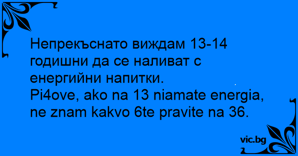 Непрекъснато виждам 13-14 годишни да се наливат с енергийни напитки.