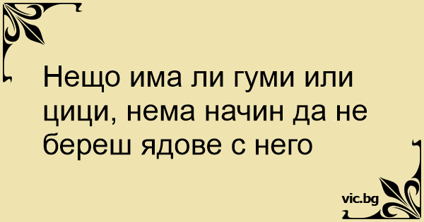 Нещо има ли гуми или цици, нема начин да не береш ядове с него
