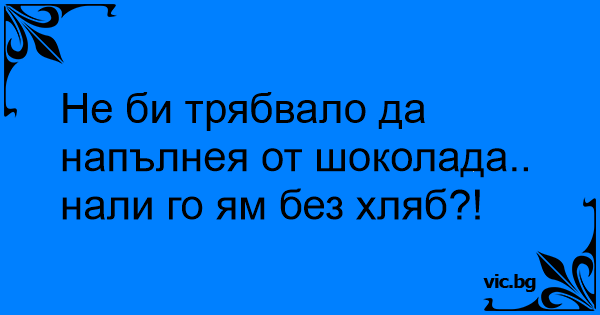 Не би трябвало да напълнея от шоколада.. нали го ям без хляб?!