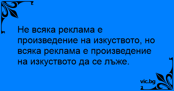 Не всяка реклама е произведение на изкуството, но всяка реклама е произведение на изкуството да се лъже.